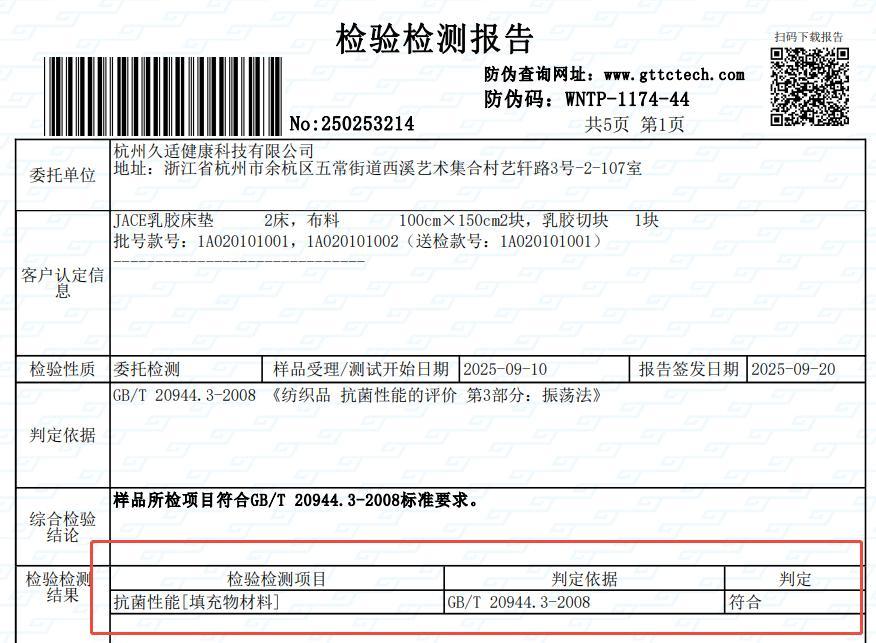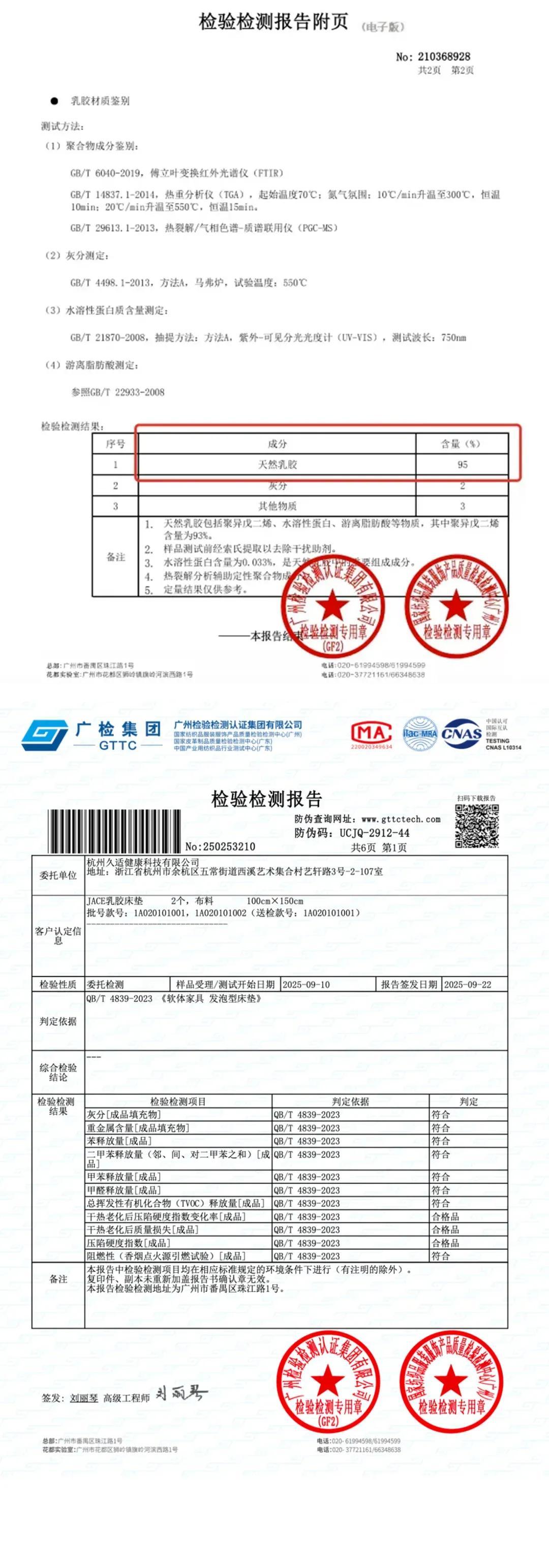 好在,Jace 這款乳膠牀墊,天然乳膠的含量高達 95%,有實打實的專業檢測報告爲證!