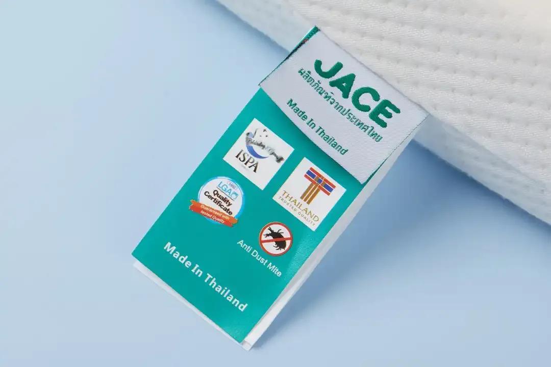 Jace 乳膠牀墊一體成型,製作過程無需蒸汽,採用先進的微波技術,使乳膠內部水分子從內而外進行整體加熱,能避免傳統乳膠工藝,因上下溫度差大而密度不均。