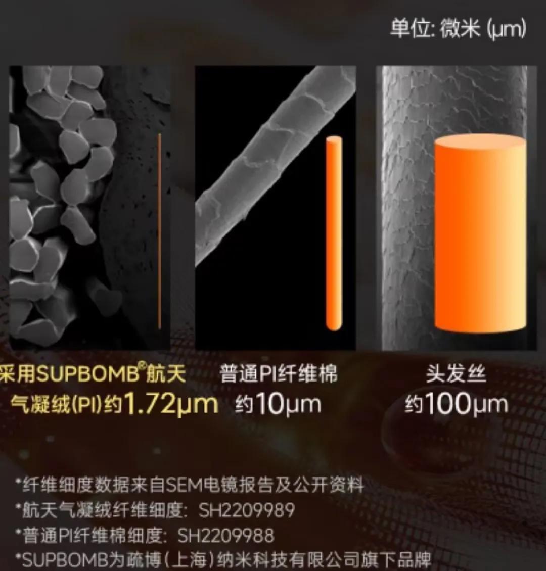 把聚酰亞胺複合層做成了超細纖維,更好的鎖住靜止空氣層,減少空氣對流~