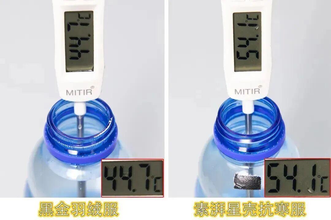 咱同時噴淋羽絨服和抗寒服,羽絨內側溫度瞬間降到了零下,抗寒服幾乎沒怎麼降溫!
