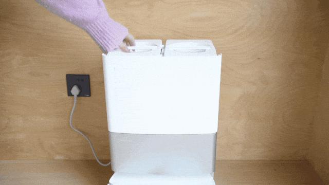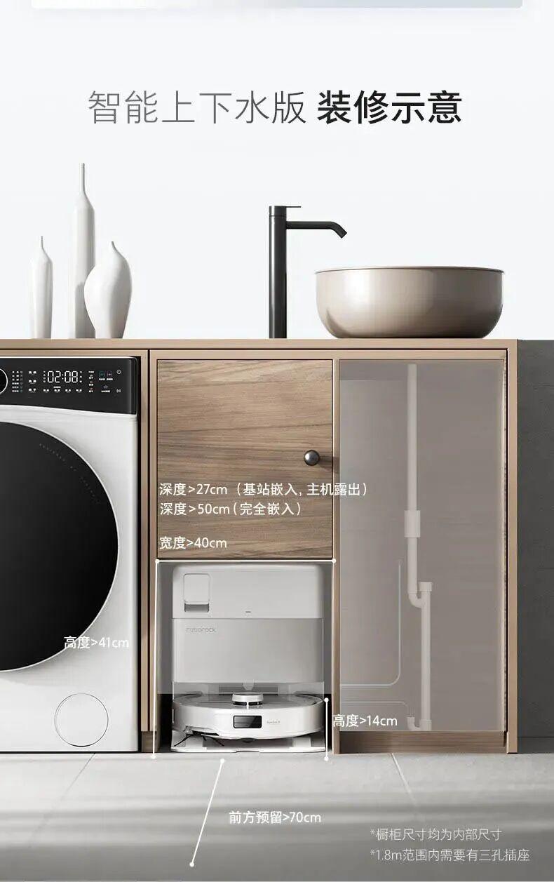 它是一個非常迷你的樁,高度僅 40.5 cm,可以完美嵌入大部分常規櫃體(如陽臺櫃、浴室櫃等),能自動上下水、自動添加清潔液,徹底實現「全自動無人駕駛」。