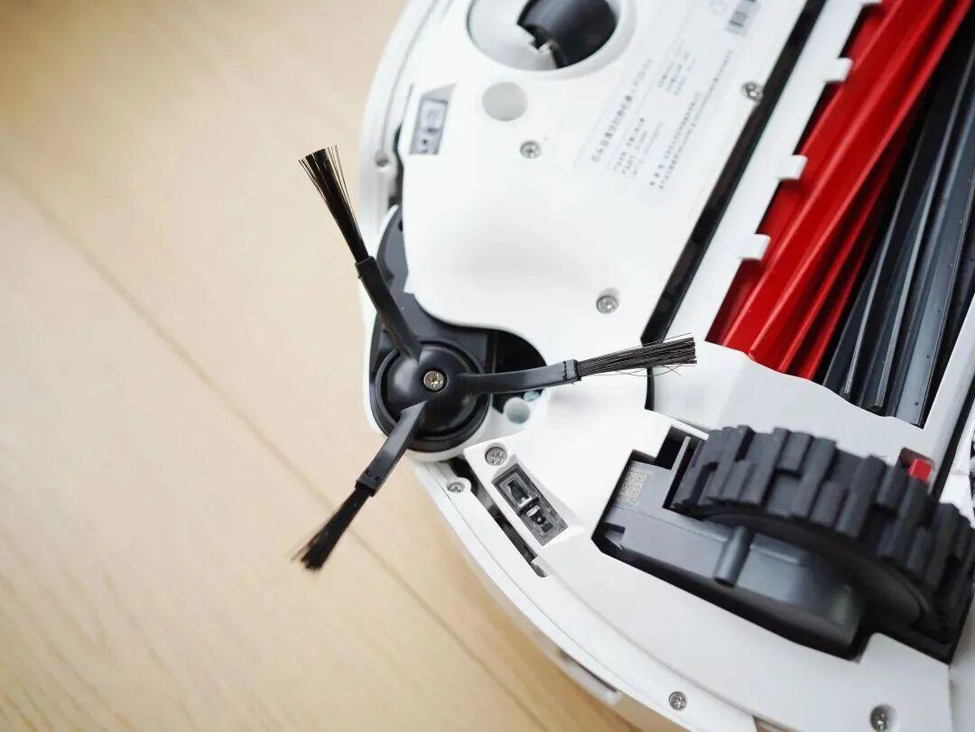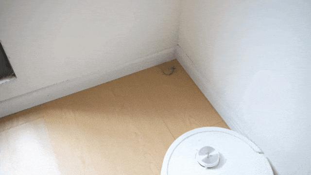 伸出來的機器臂能很輕鬆地夠到牆角,真正實現了 0 貼邊,把靠在牆邊的垃圾、灰塵清掃出來,喫進集塵盒裏。