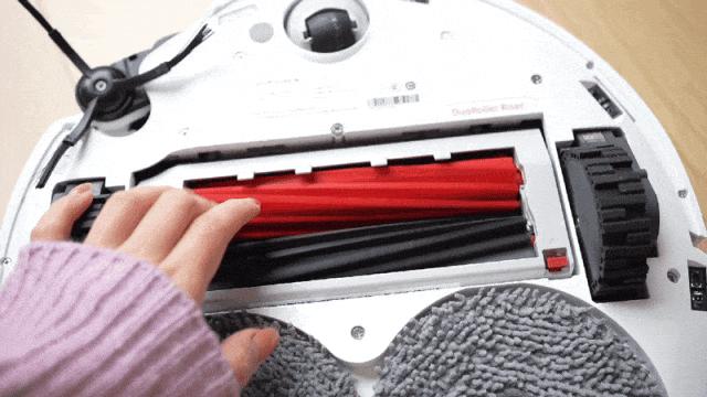 它有兩個膠刷,在清潔過程中形成雙刷內旋,對向內卷,就像兩隻手把毛髮、垃圾等往中間聚攏。