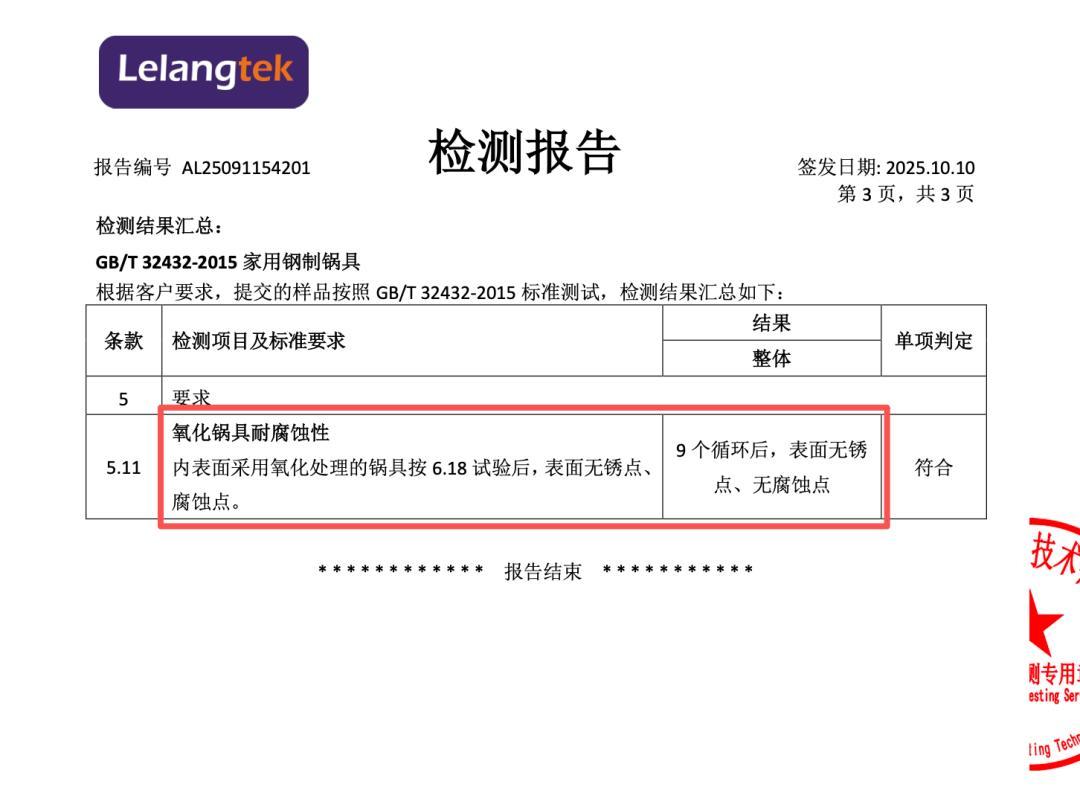 鐵鍋愛生鏽,是它的通病,但是咱們這口鍋經檢測,防鏽性能也很優秀。
