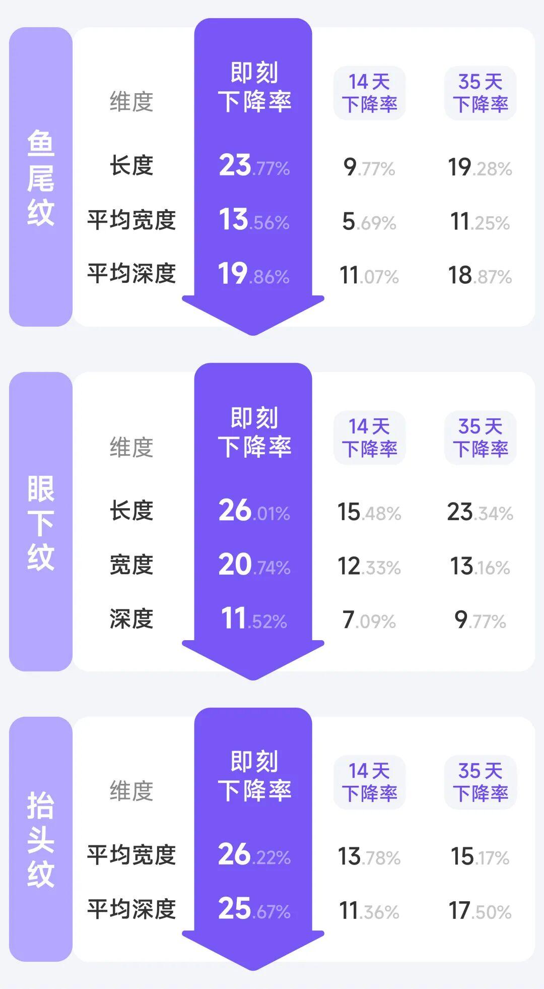 皺紋長度、寬度、深度多方位變淡