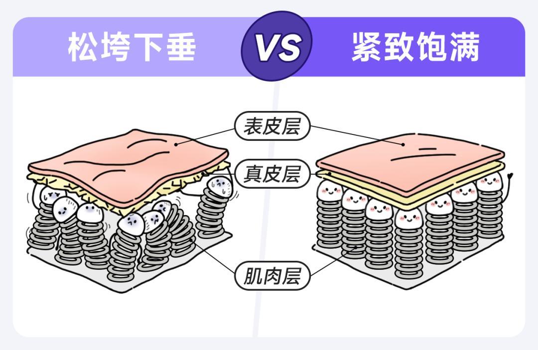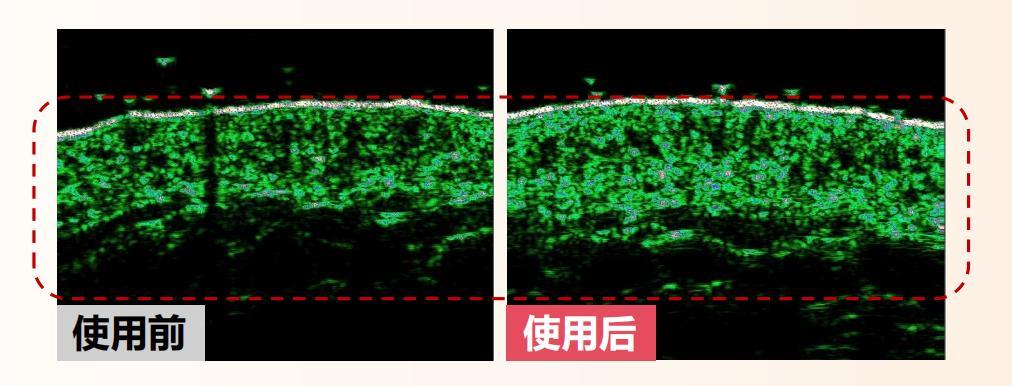 第二是真皮「嘭」得滿,真皮層變密變厚,皮膚更充盈;