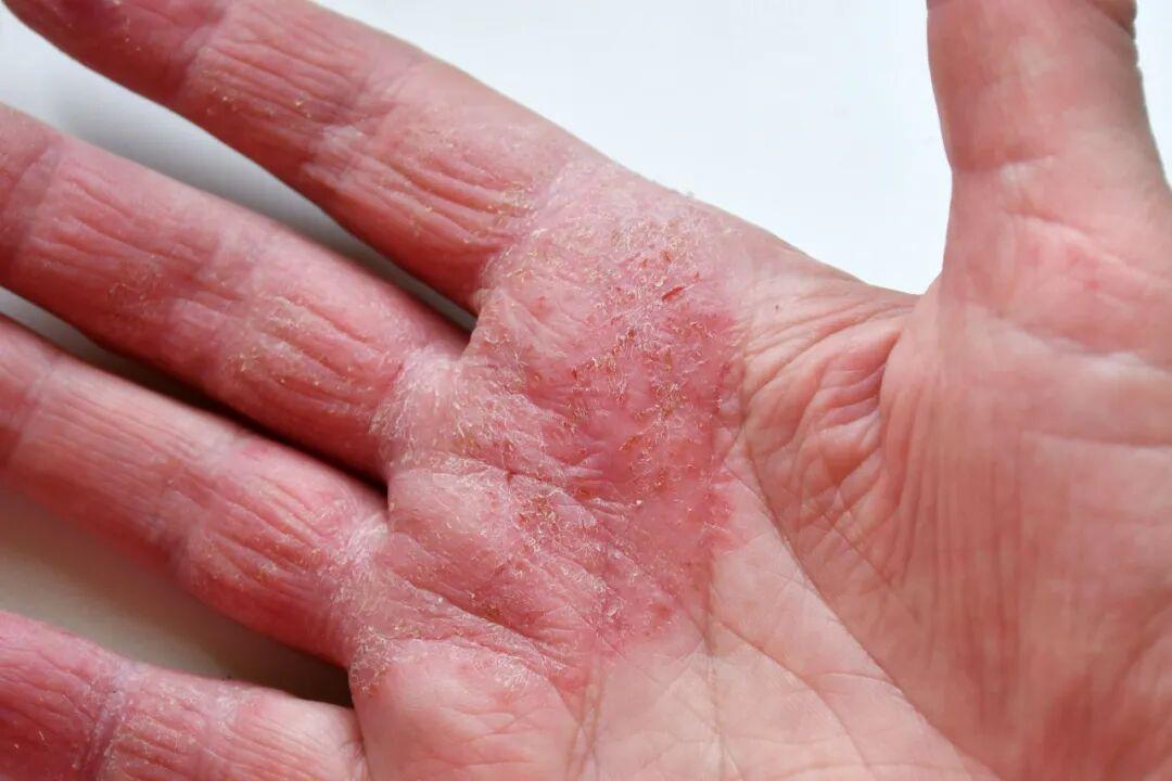 特點:典型表現爲紅色斑塊或丘疹,表面覆蓋銀白色鱗屑;皮膚乾燥、粗糙,伴有瘙癢或灼熱感。