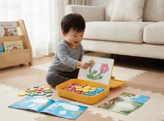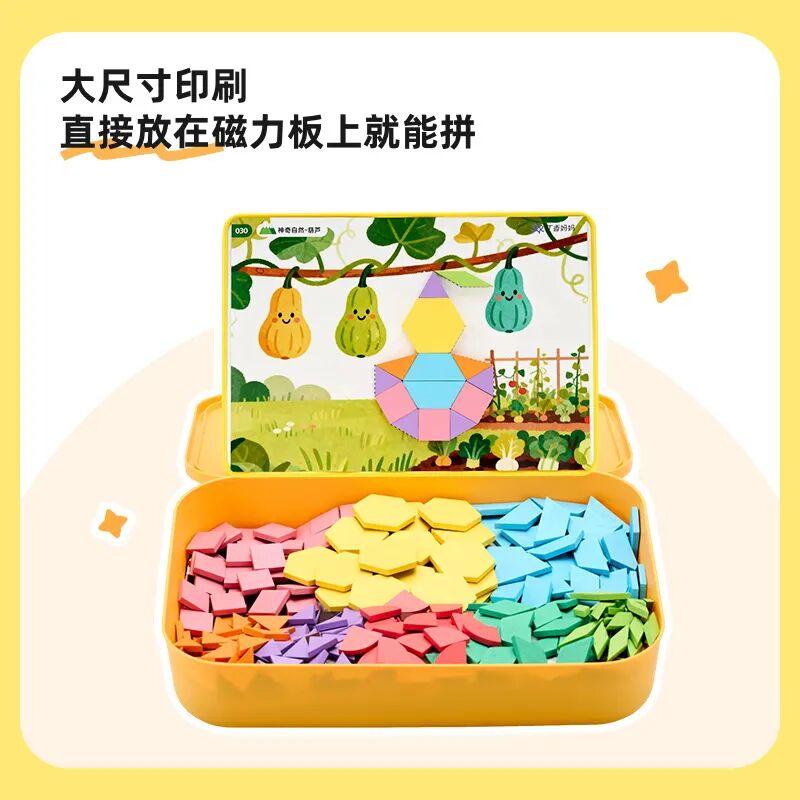 市面上很多七巧板通常只有 7 塊,孩子拼兩下就沒得拼了,創意很容易受限。