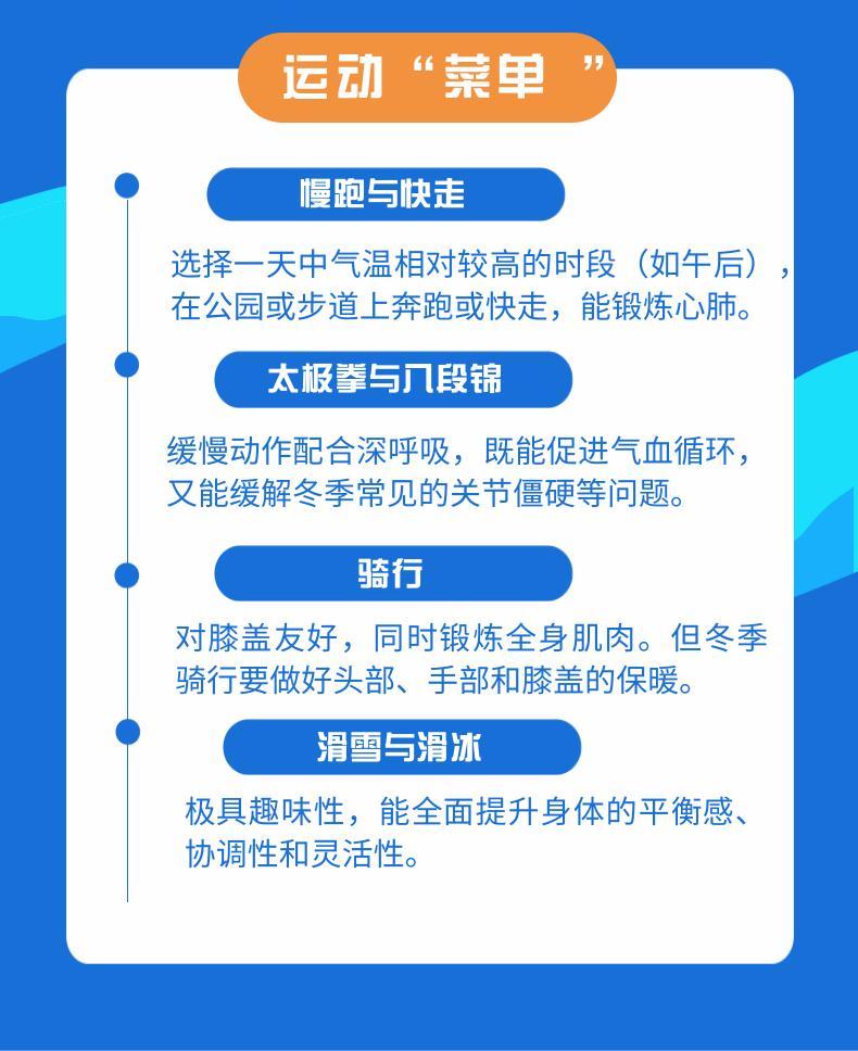 冬季運動不必拘泥於形式,大家可以根據天氣和個人喜好,靈活選擇室內或室外項目,這樣更容易堅持。