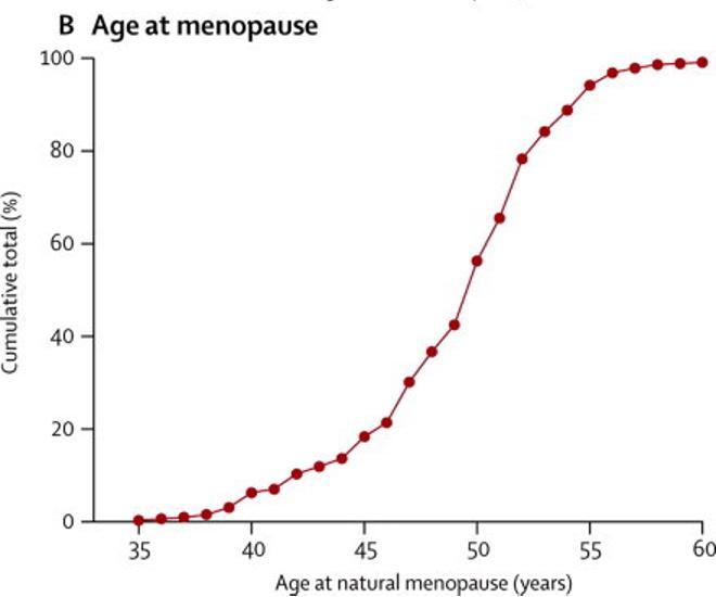 換句話說,45 歲絕經和 55 歲絕經,都算在「正常」範圍之內。