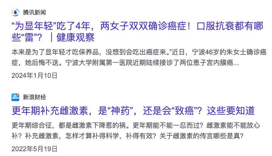 有些朋友聽說「雌激素好」「激素越多越年輕」,於是私下服用激素類產品,想要延緩絕經、保住「年輕」——可結果往往適得其反。雌激素有好處也有風險,要在醫生的指導下使用,可不能自己亂來。還有些所謂的產品,連成分劑量都不知道是啥,風險就更大了。