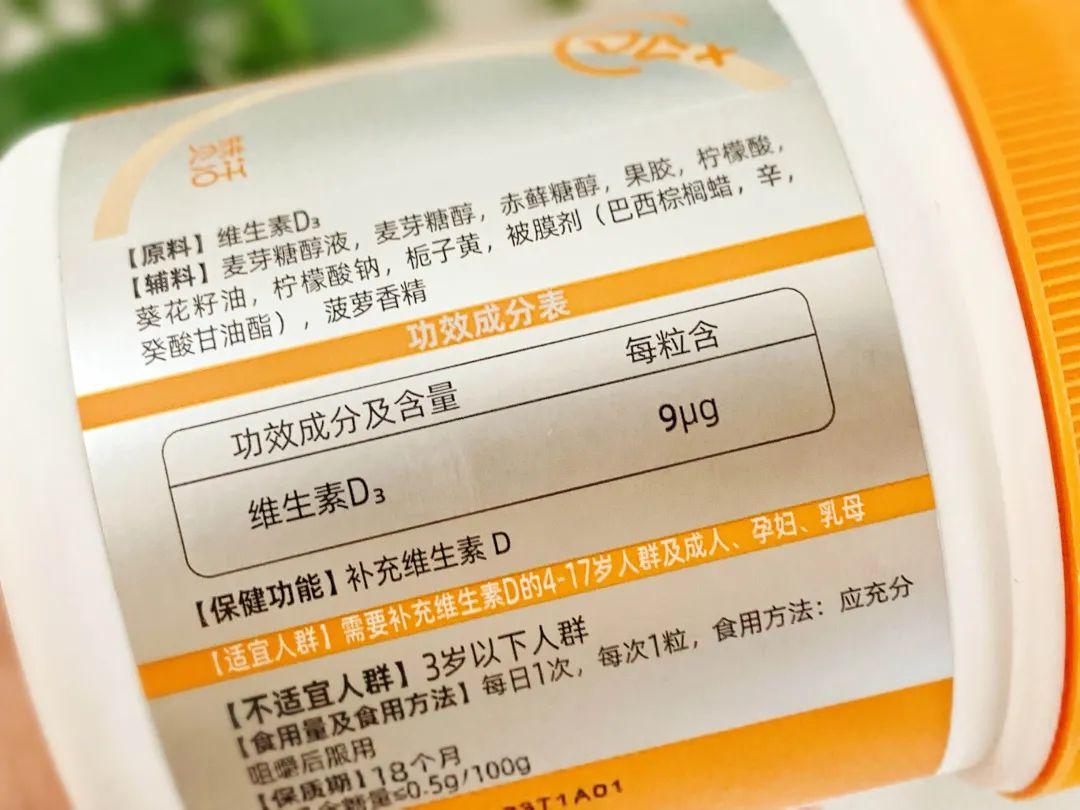 別看這小小一顆軟糖,裏面添加了足足 9 μg 的維生素 D3,相當於 360 IU。
