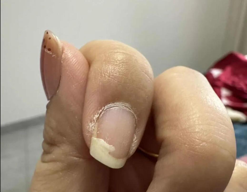 美甲人的至暗時刻隨之而來,摳掉之後,指甲變得又薄又脆,甚至能看到出血點、火辣辣的疼。
