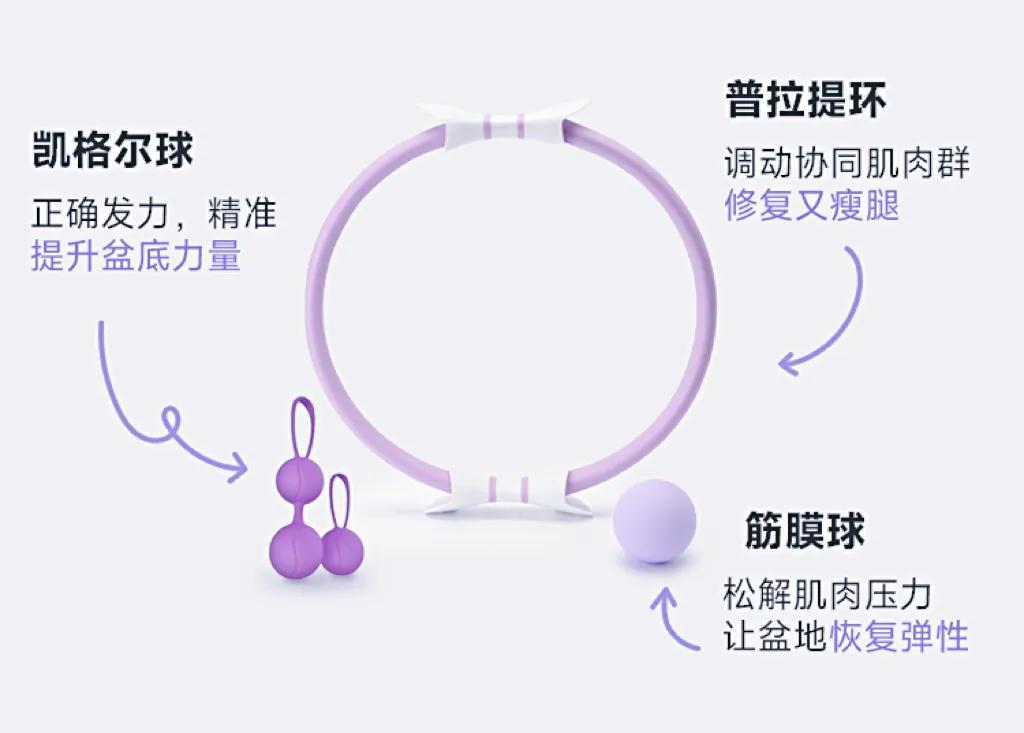 爲了保障修復效果,我們還專門定製了與修復計劃配套的 3 大教具:凱格爾球、普拉提環、筋膜球,全套價值 199 元。
