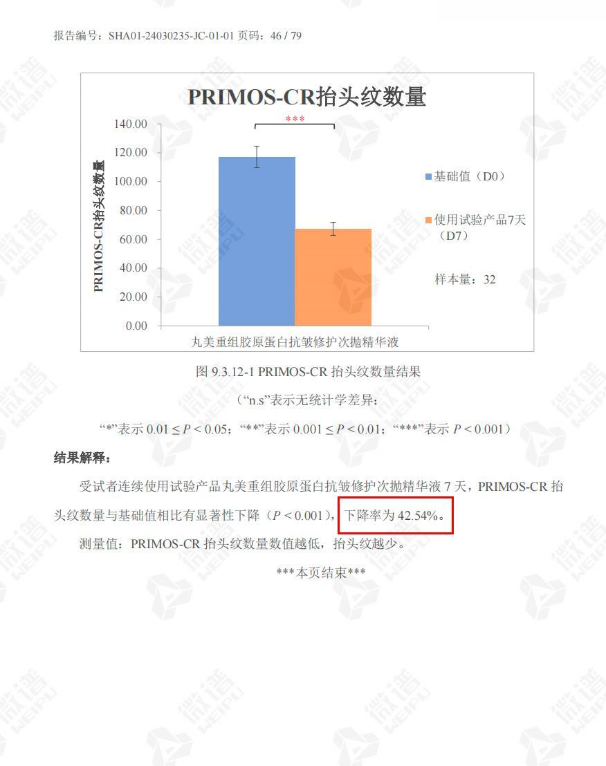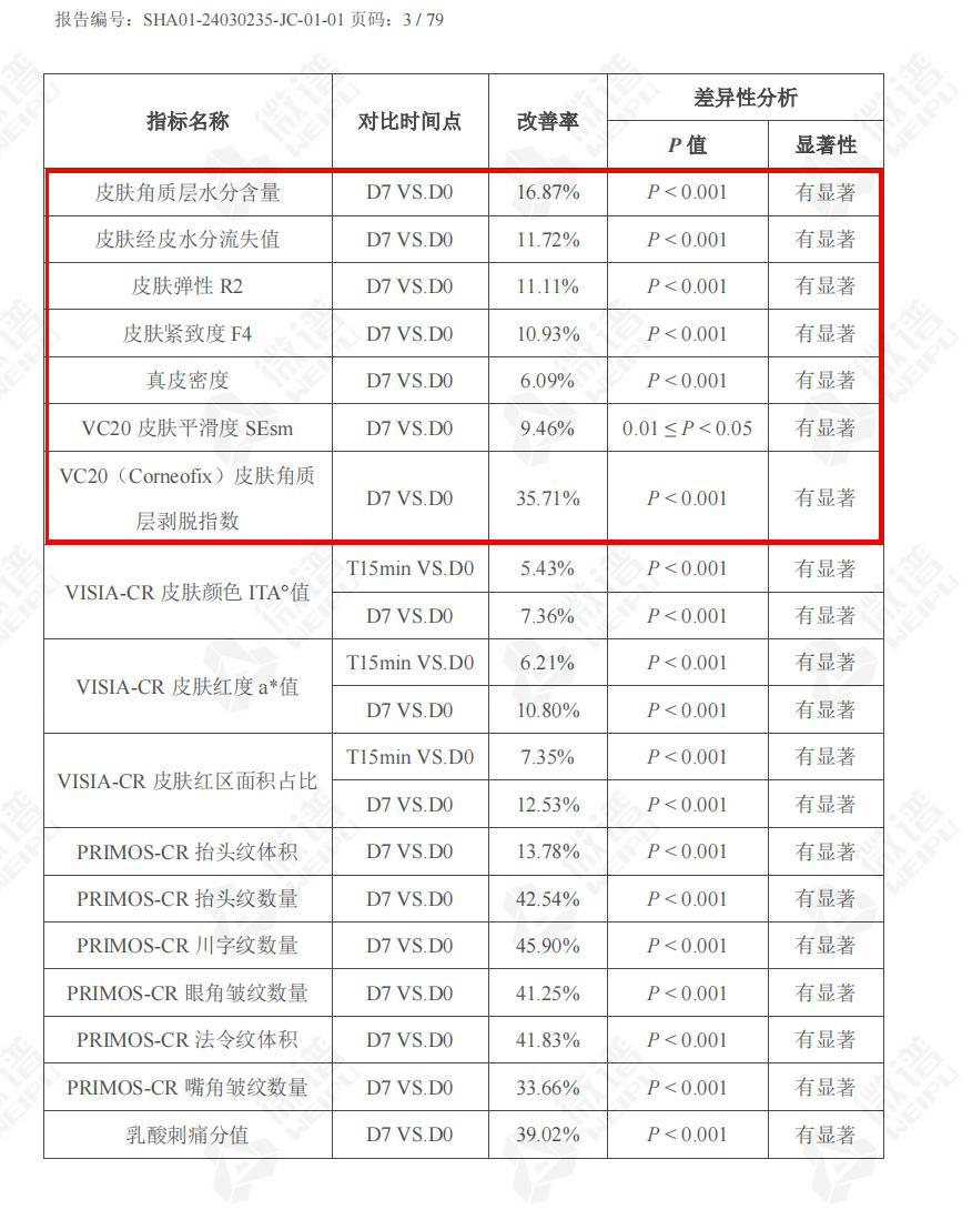 報告爲證:31 名敏感肌人羣連續使用 4 周,0 不良反應,且 TEWL 值(經表皮水分流失)、眼下皺紋體積等多個抗皺指標也顯著降低~