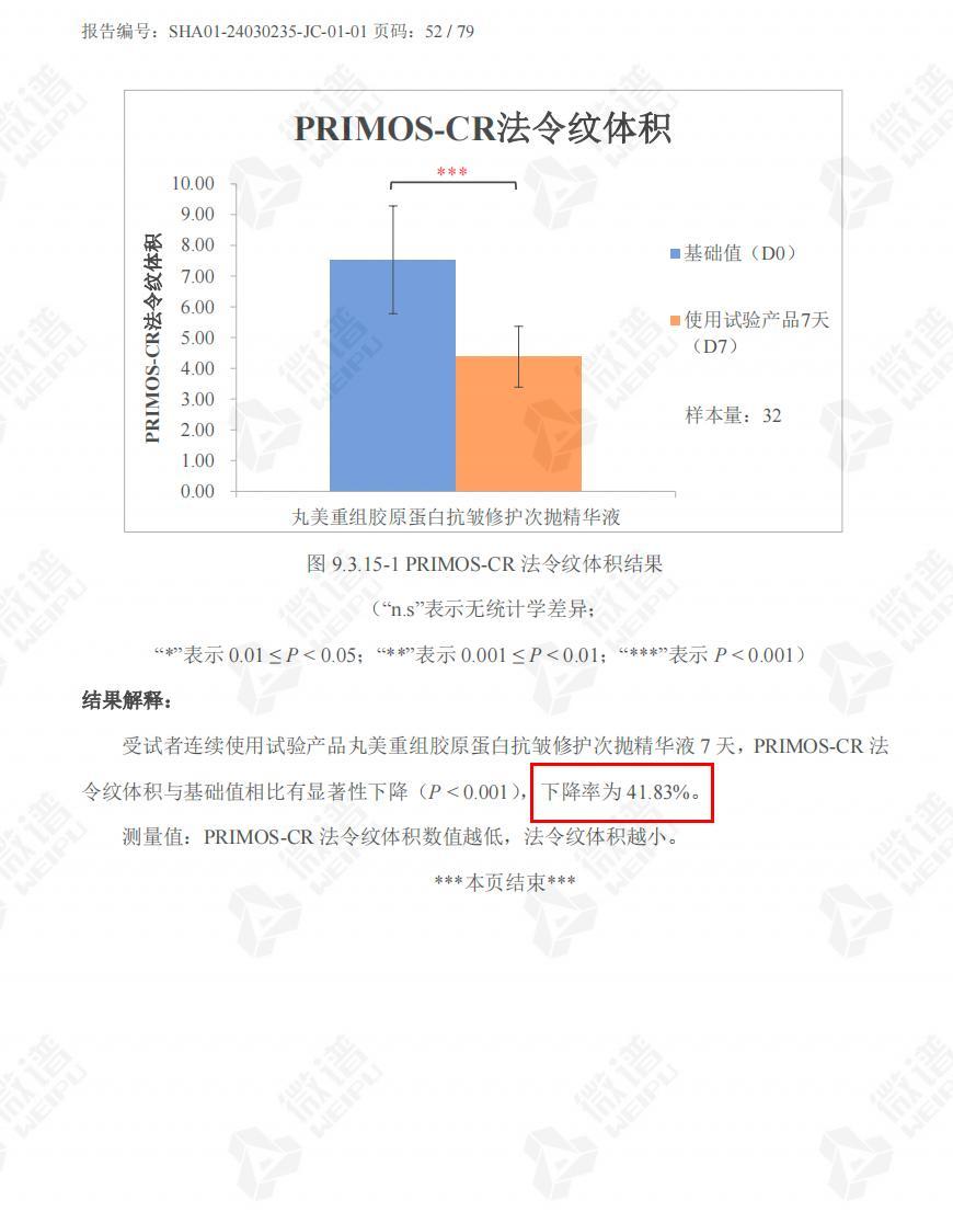 目前市面上能夠做人體雙光子實驗,證明滲透性的膠原蛋白很少,而丸美的這款產品在雙光子實驗中 8 小時能夠滲透表皮 18 微米,併發揮作用;