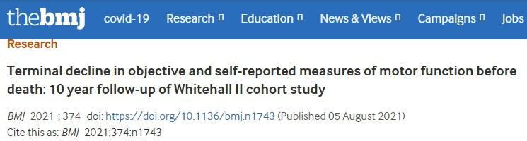 [2] Terminal decline in objective and self-reported measures of motor function before death: 10 year follow-up of Whitehall II cohort study.BMJ 2021;374:n1743