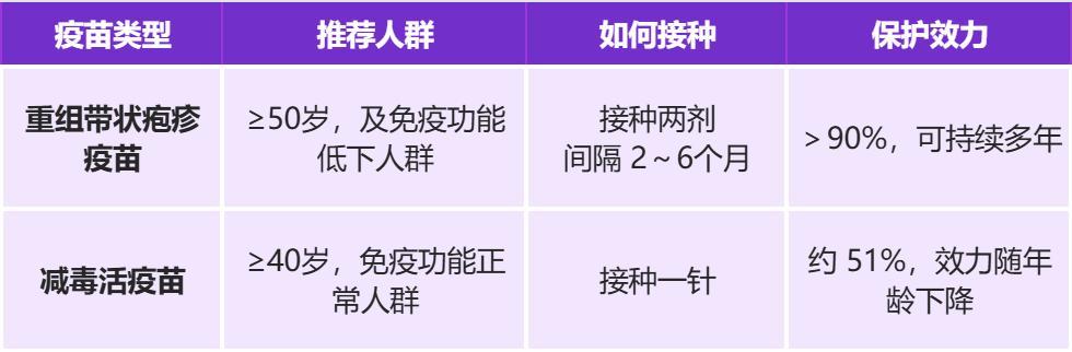 對於 50 歲以上的中老年人,尤其是有糖尿病、高血壓、睡眠差、長期勞累者,強烈建議接種重組帶狀皰疹疫苗。