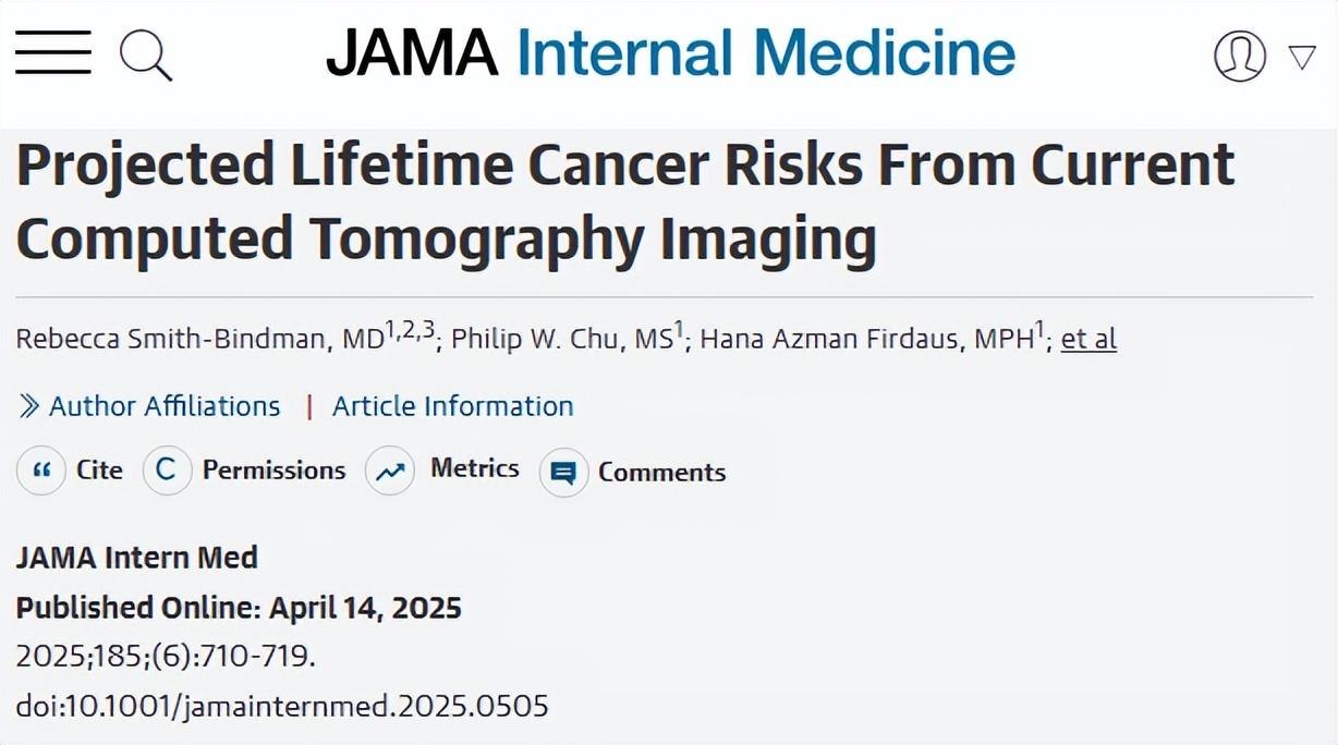 加州大學舊金山分校發表在《JAMA》子刊的上的一項研究指出,CT檢查所帶來的輻射致癌風險不容忽視。