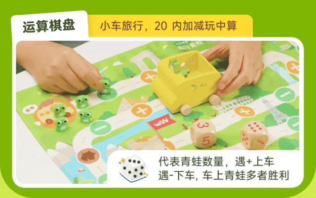 運算棋盤,則是一場快樂旅行,小青蛙會駕駛的士,帶孩子體驗有趣的加減運算。