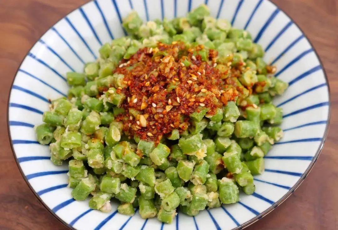 在陝西和甘肅,這種蒸菜又叫麥飯、裙裙(瓊瓊)。槐花、榆錢、苜蓿都可以蒸,滿滿鄉野生趣。靈魂是最後那一道油潑辣子,滋啦一下香氣竄天,尋常野菜也能變成喫不夠的美味。