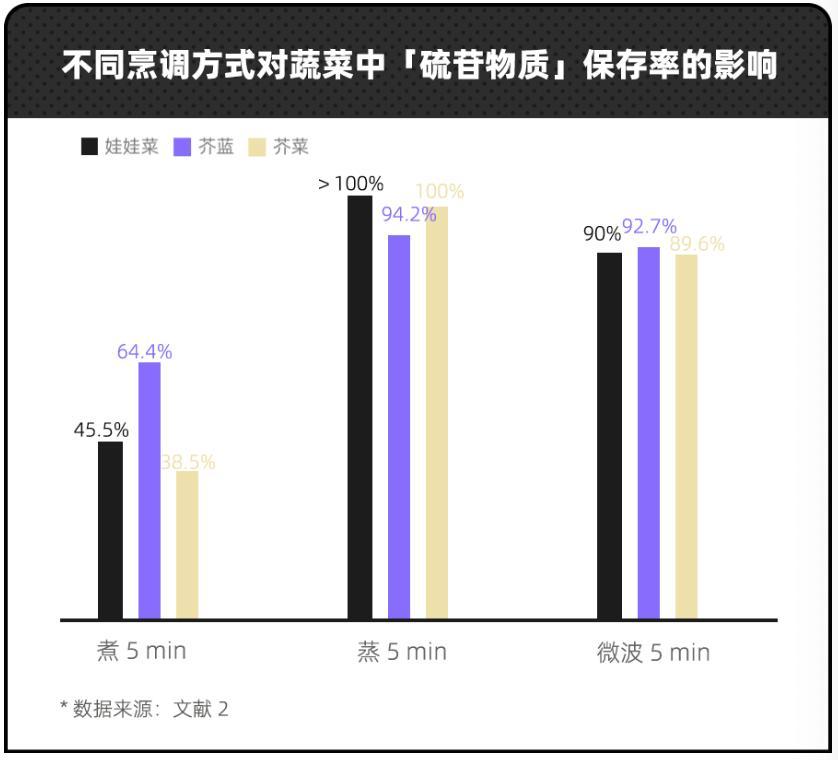 有實驗對不同烹調方式下,3 種十字花科蔬菜中硫苷物質的保留率進行對比,發現蒸的方式保留率最高。