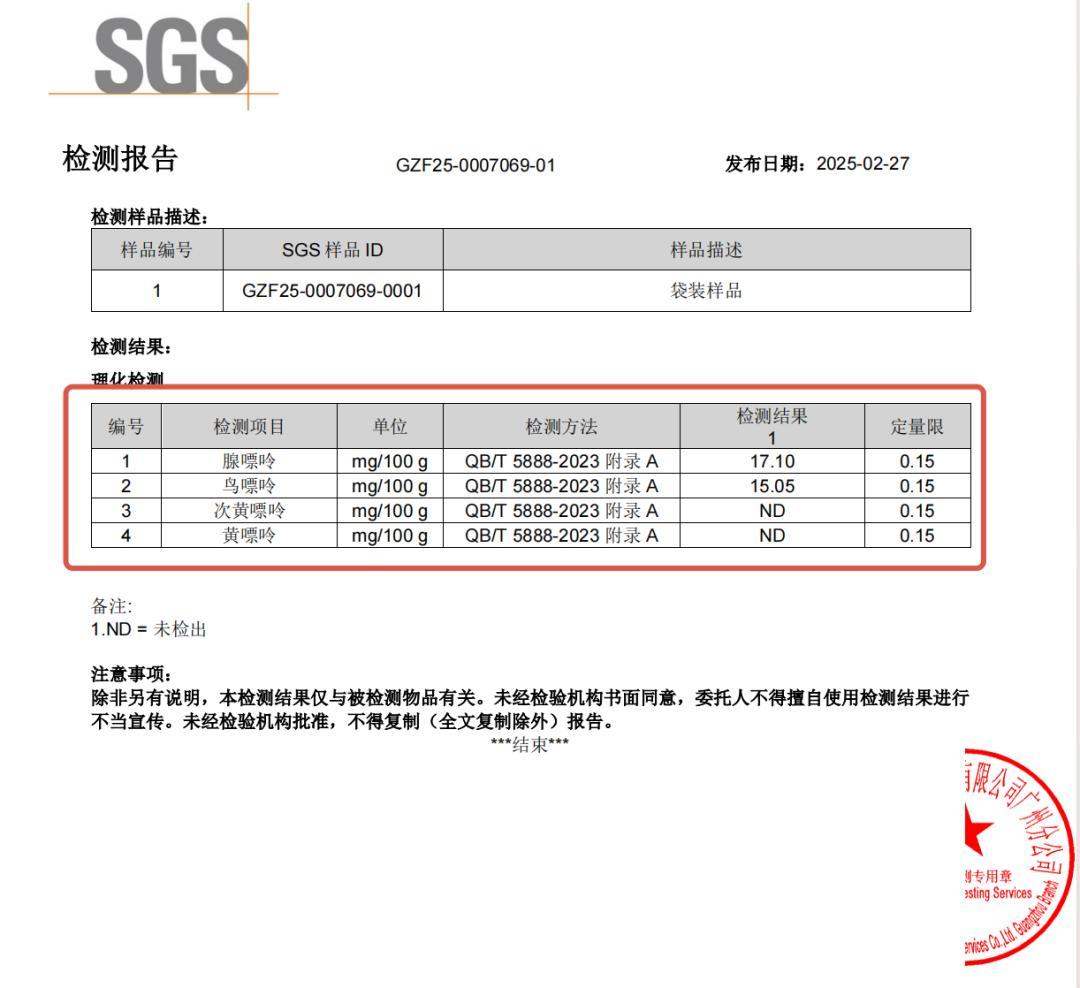 經 SGS 檢測,我們的鷹嘴豆總嘌呤爲 32.15 mg / 100 g,屬於低嘌呤食品。[4]