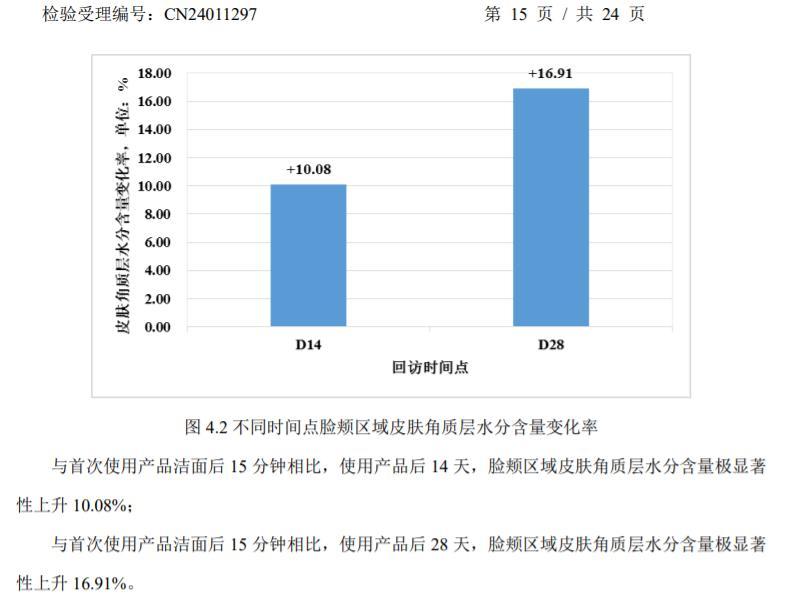 28 天后臉頰皮膚含水量反而上升 16.91%
