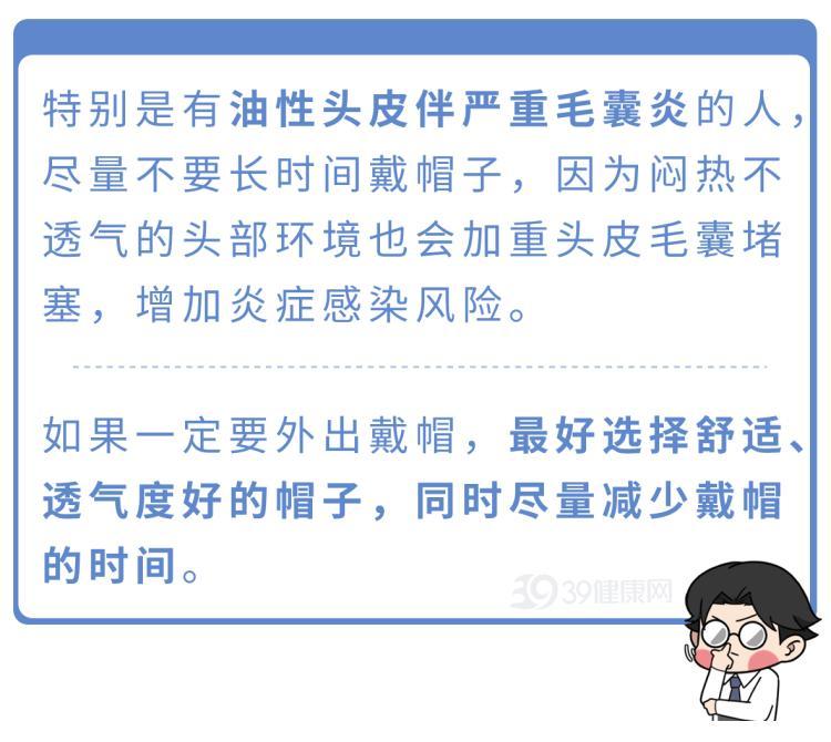 頭皮也需要“呼吸”,持續悶熱環境會加劇油脂分泌,可能導致脫髮加重。再加上受帽檐壓迫,也可能引起髮際線後移的風險。