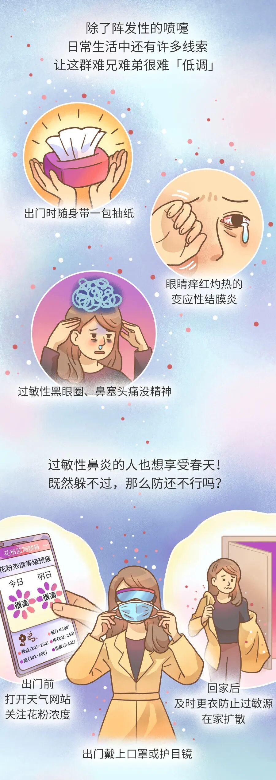 藥物之外,大家還要做個生活的有心人,拿捏好基礎手段~例如出門前關注每日的花粉濃度情況,正確佩戴口罩、護目鏡;回家後及時用鹽水沖洗鼻腔,注重家居清潔,都是在主動遠離過敏原。