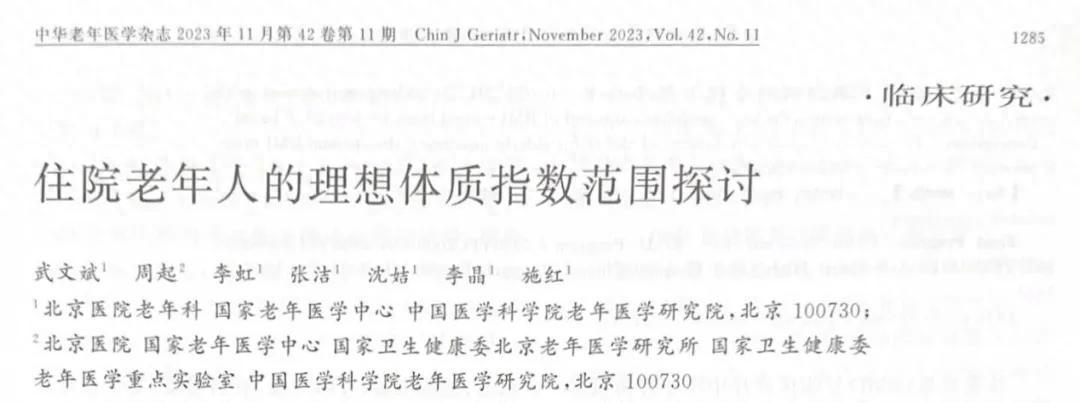 [1] 武文斌,周起,李虹等.住院老年人的理想體質指數範圍探討[J].中華老年醫學雜誌,2023,42(11)