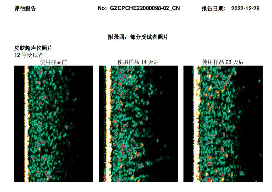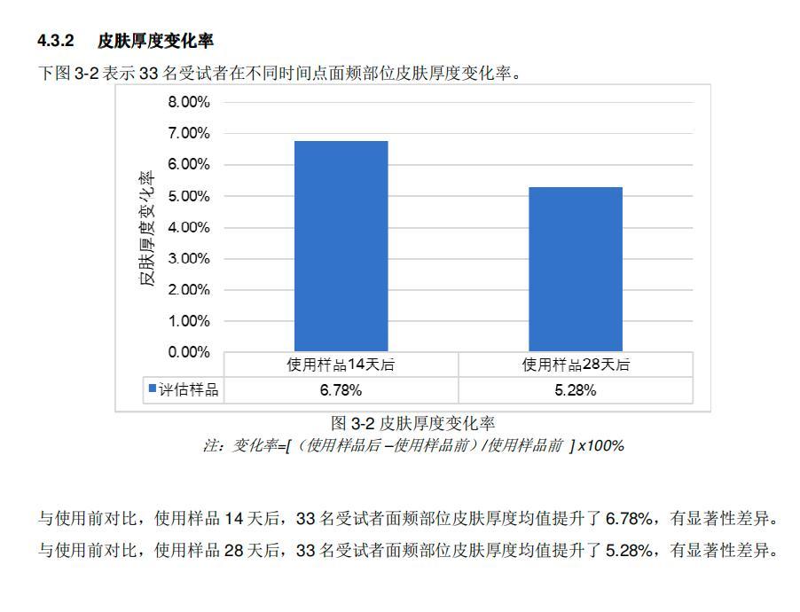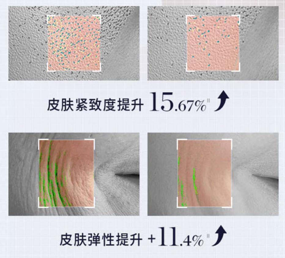 使用 28 天后,受試者皮膚厚度、密度雙提升:+ 5.28% 和 +12.57%,彷彿讓皮膚底層「薄墊」變成堅實「厚墊」,把鬆弛撐起來。