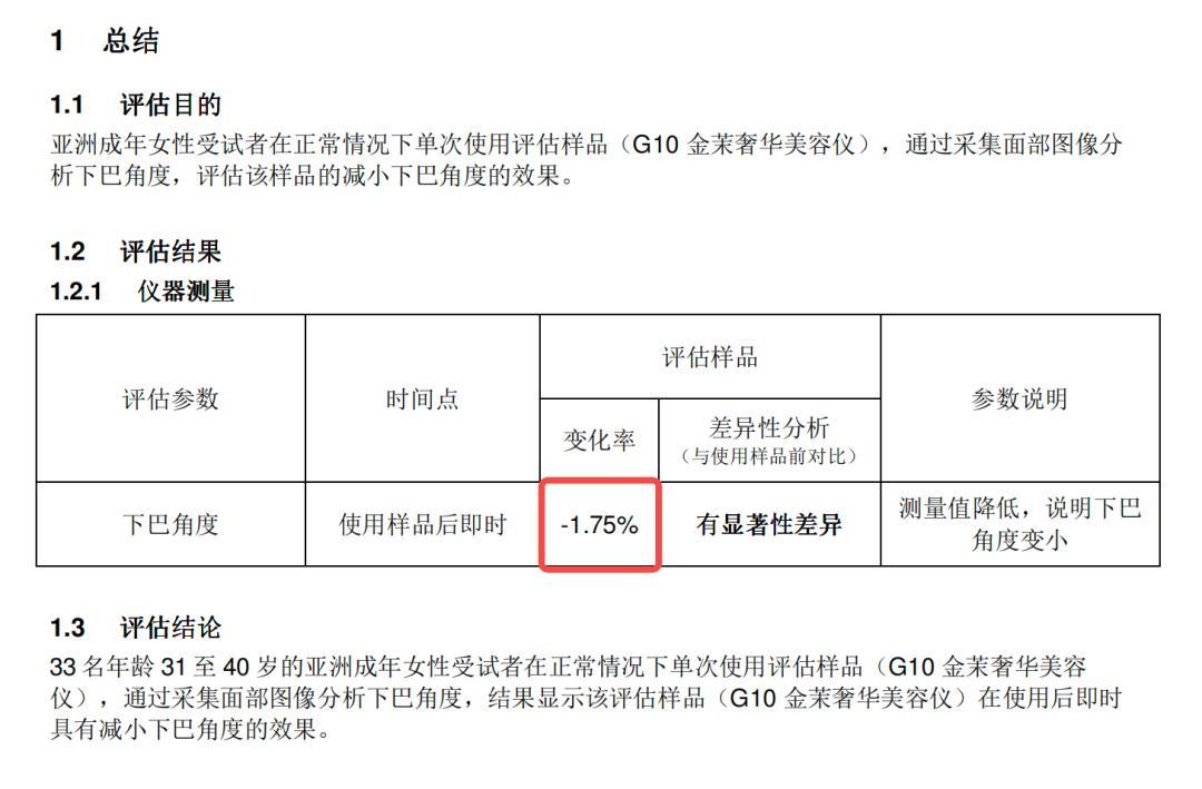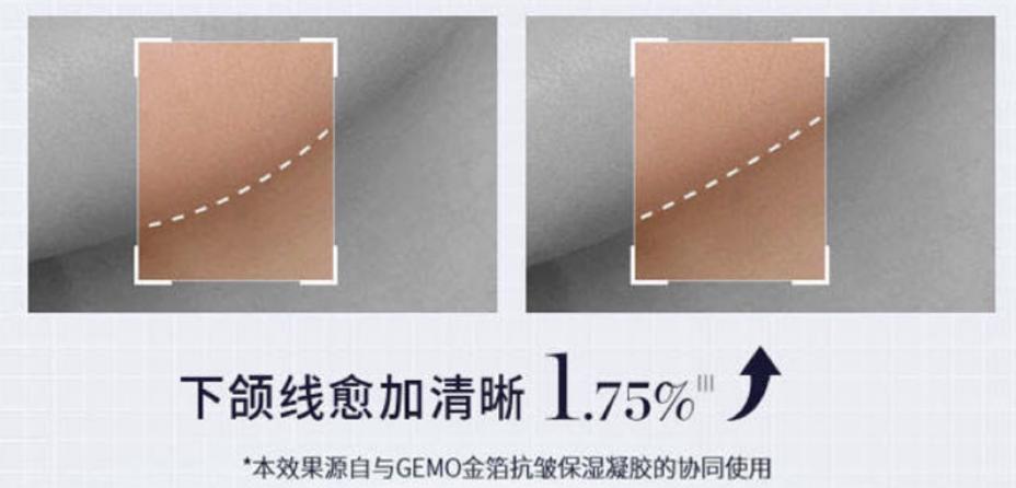 受試者使用樣品後即時下頜線就收緊了 1.75%,別看這個數值聽起來有點小,但是肉眼看就是整個人變得緊緻精神,不再腫泡泡的。