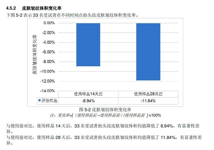 抬頭紋皺紋體積顯著 -11.84%