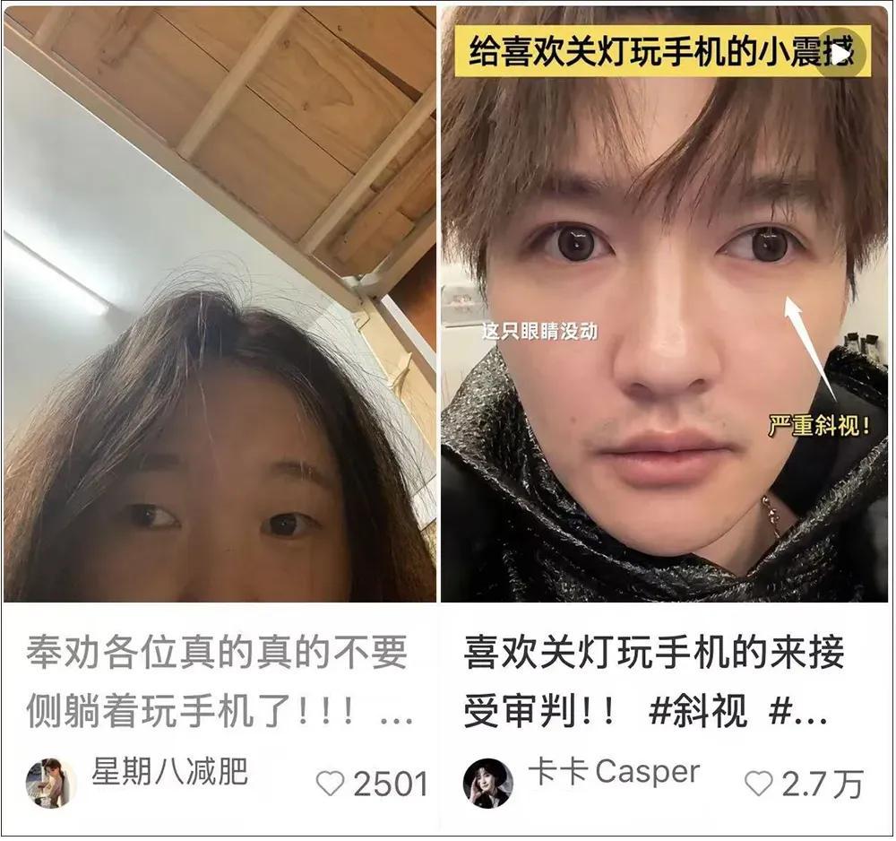 更有網友現身說法,由於經常側躺看手機,眼睛疑似已經出現斜視。