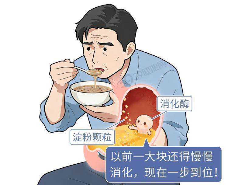 研磨還會讓澱粉顆粒變得更小,更容易被身體消化吸收,再加上高溫熬煮會使澱粉充分糊化,消化速度就會更快,更易升糖。