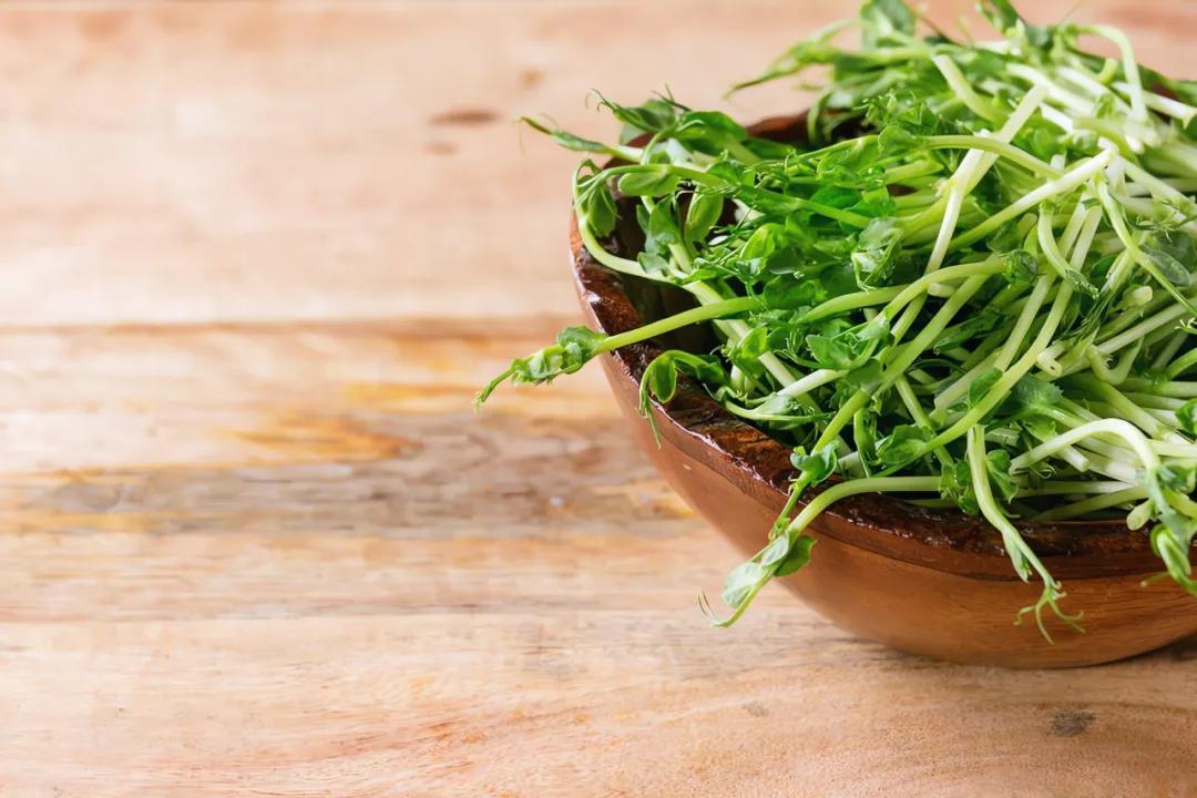 豌豆苗有點像細一點的豆芽,將豌豆泡發後水培或土培,就能長出翠綠的豌豆苗,它是豌豆最幼嫩的莖葉,其口感清脆,可以清炒,也可以涮火鍋、做湯、焯燙後涼拌。