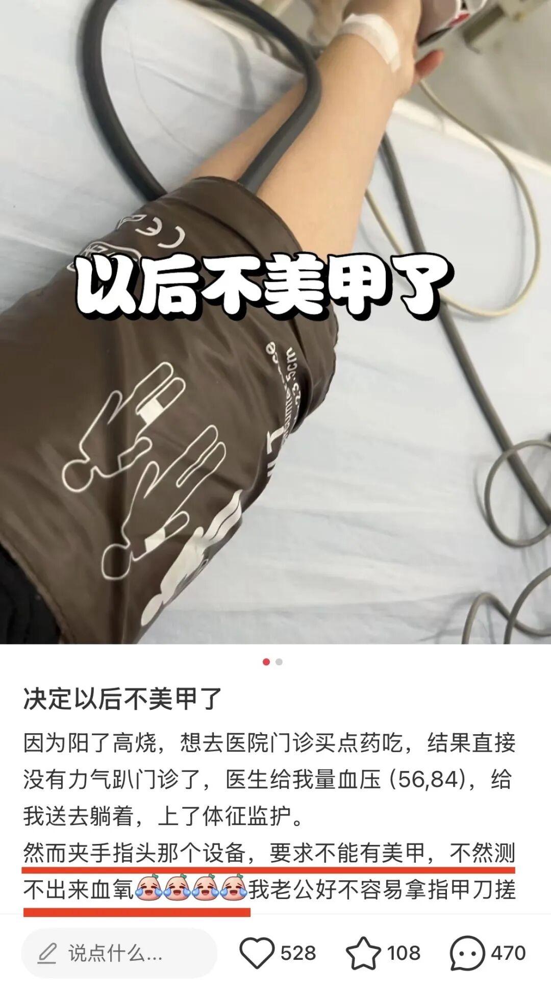 趕上那些手指腳趾全套美甲的患者,醫院偏偏只有脈氧指套,而非纏帶式,可不就耽誤判斷。