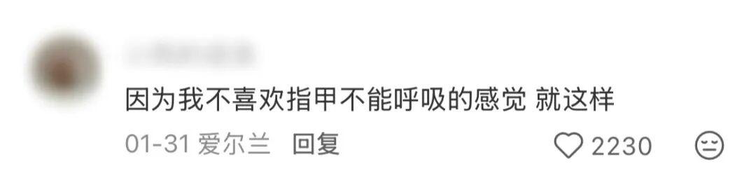 雖然指甲沒有肺,也不進行氣體交換,但摘掉手套那一刻的無比爽快,懂的人都懂。這可能也是爲什麼,一大批女生,已經棄坑美甲了。