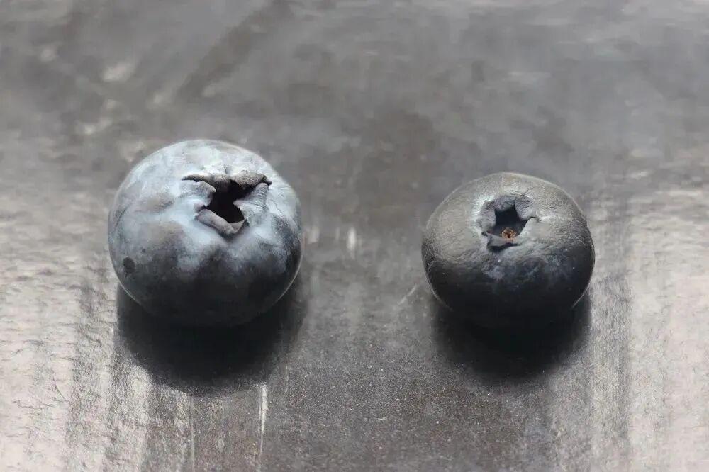 我特地從樓下水果店,買了同樣尺寸的藍莓進行對比,光是從外觀上看,就有明顯差距。