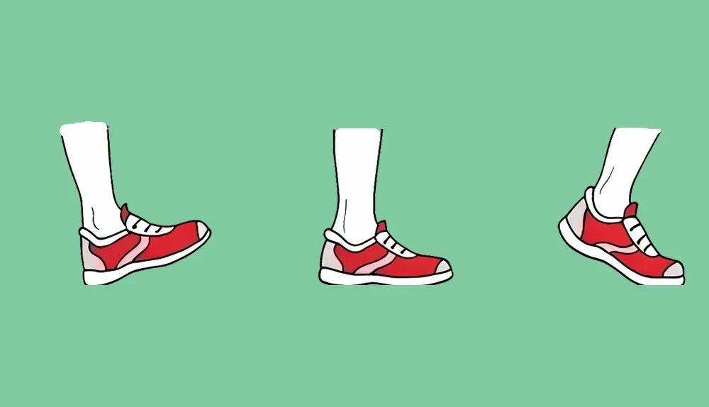 走路時抬頭挺胸,上臂自然擺動,抬腿邁腳,按腳跟→腳掌→腳趾的順序滾動着地。儘可能避免內外八字,以免發力點不科學損傷關節。