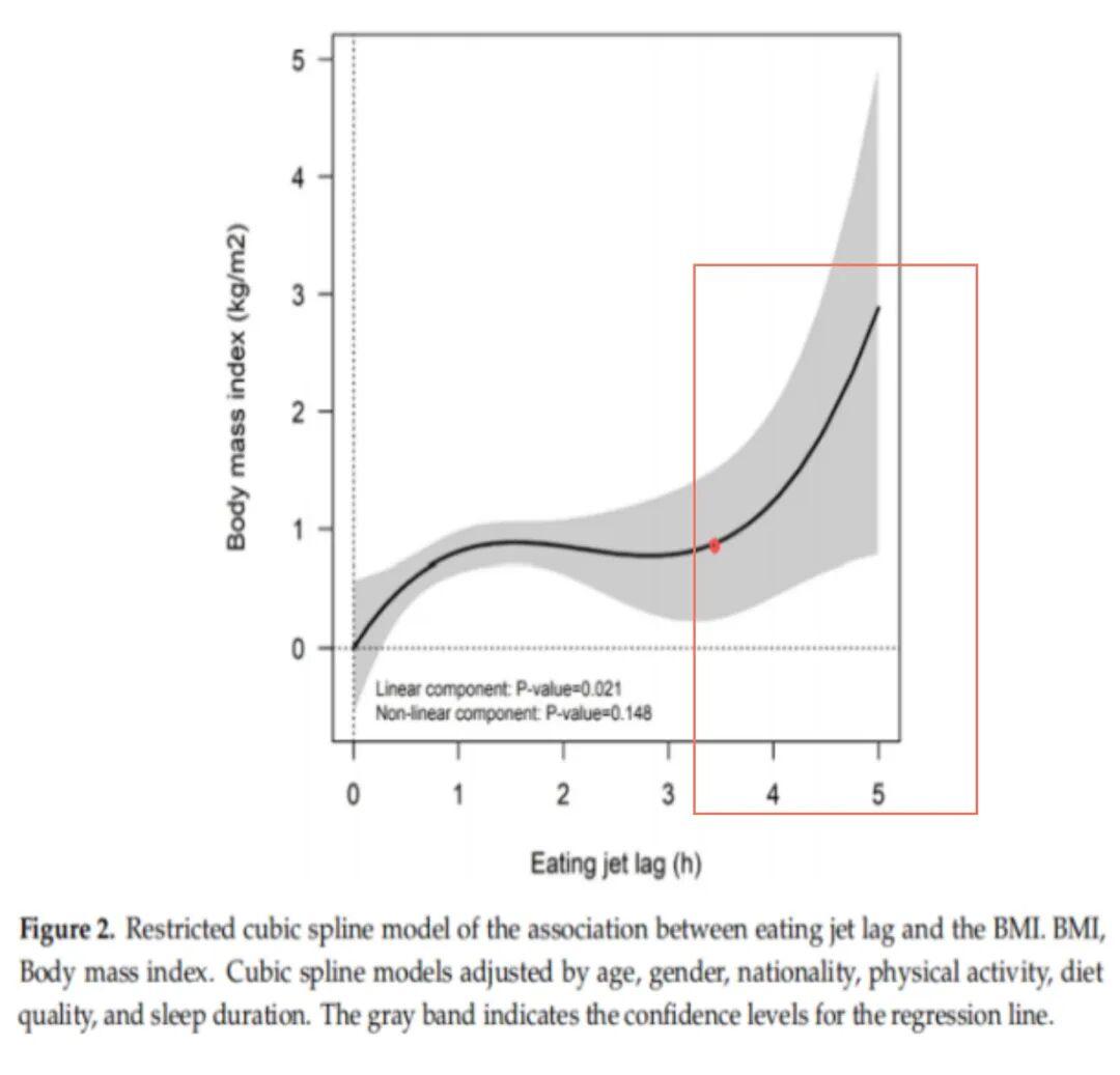 [6]Zerón-Rugerio MF, et al. Eating Jet Lag: A Marker of the Variability in Meal Timing and Its Association with Body Mass Index. Nutrients. 2019 Dec 6;11(12):2980.