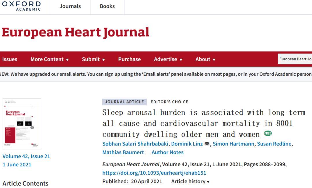 [5]Sobhan Salari Shahrbabaki, Dominik Linz, Simon Hartmann, Susan Redline, Mathias Baumert, Sleep arousal burden is associated with long-term all-cause and cardiovascular mortality in 8001 community-dwelling older men and women, European Heart Journal, Volume 42, Issue 21, 1 June 2021, Pages 2088–2099, https://doi.org/10.1093/eurheartj/ehab151