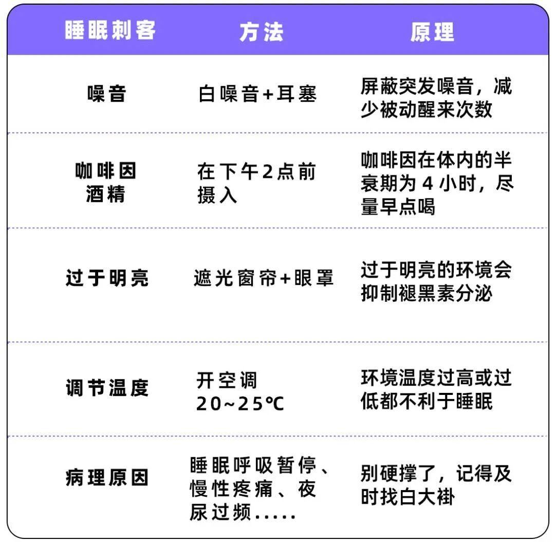 而倘若你的睡眠碎片化是外因引起的,這裏也爲你準備了應對各種「睡眠刺客」的方法,主打一個有備無患——