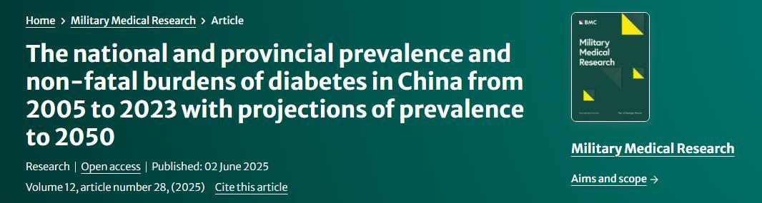 [1] The national and provincial prevalence and non-fatal burdens of diabetes in China from 2005 to 2023 with projections of prevalence to 2050. Mil Med Res. 2025 Jun 2;12(1):28. doi: 10.1186/s40779-025-00615-1