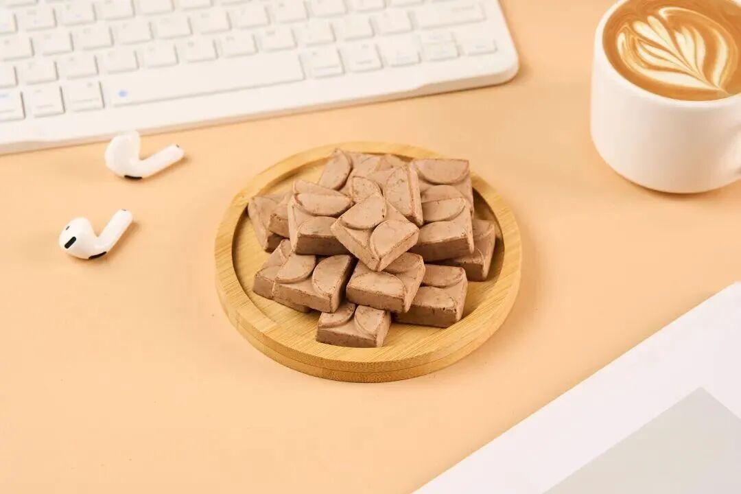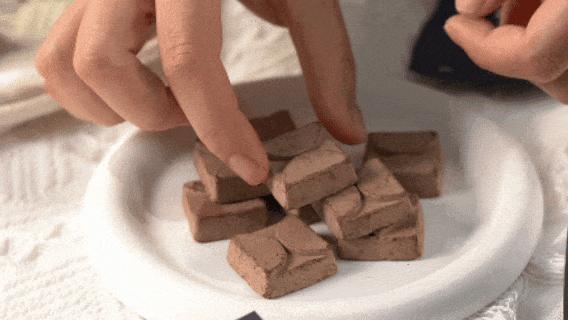 水分被悄無聲息地抽走,留下的,是一個充滿均勻微孔的蜂窩狀凍幹巧克力。這就是入口那聲 「嘎吱」響的真正來源,成就了凍幹巧克力酥脆均勻、結構穩定、不易吸潮粘牙的特殊質地。