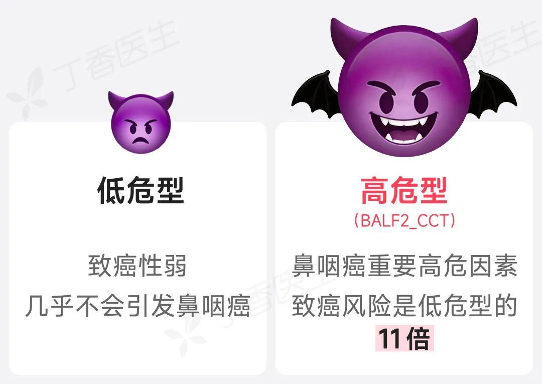 感染這種高危亞型的人,患上鼻咽癌的風險,比感染低危亞型的人高出 11 倍。[5]