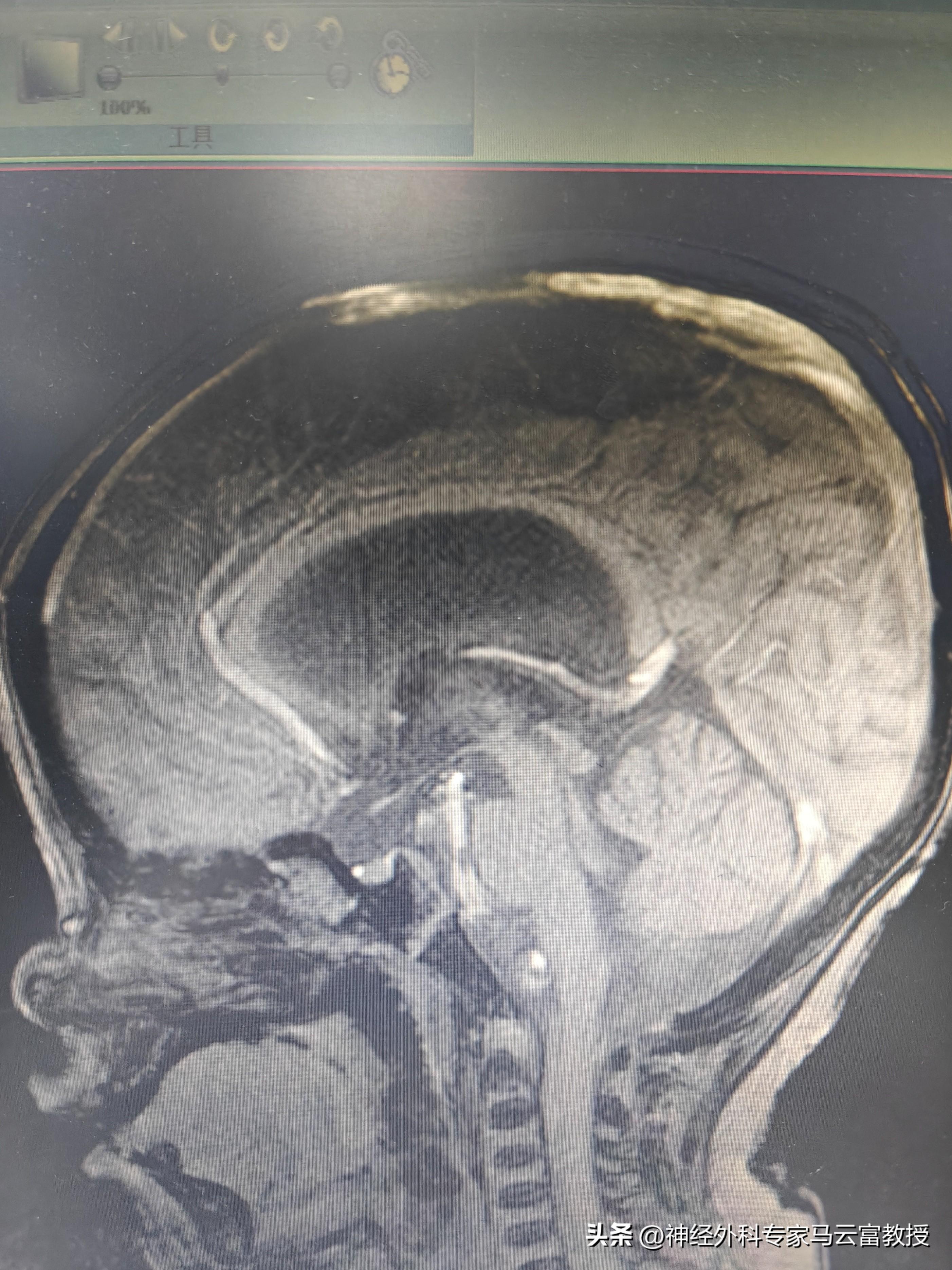 我院神經外科馬雲富主任接診後,通過細緻查體與顱腦 CT 檢查,明確診斷爲幕上腦積水。入院後,團隊完善了腦 MRI + 腦脊液電影成像等精準檢查,最終判斷爲不全梗阻性腦積水,且腰穿提示腦室內壓力不高。綜合評估後,馬雲富主任爲患兒制定了腦室 - 腹腔分流術的治療方案,爲寶寶的大腦 “減壓”,重啓正常發育的可能。