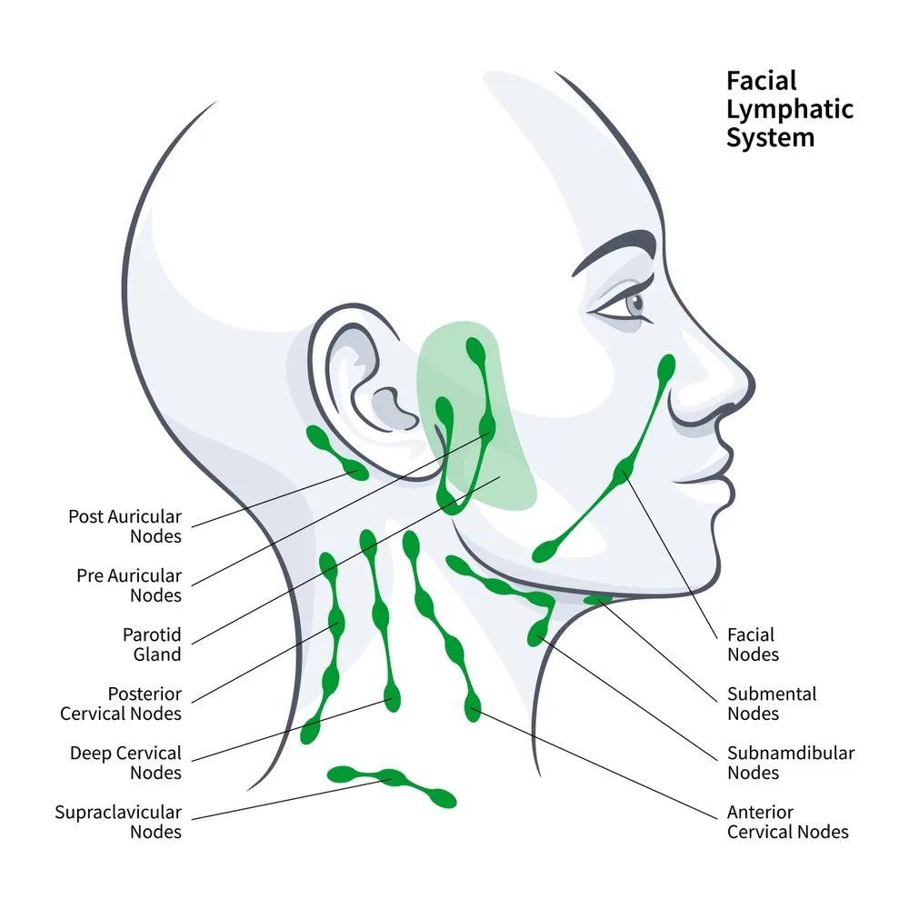 淋巴結就像是一個個小小的「檢查站」,是免疫系統的情報中心,我們全身總共有 500~600 個淋巴結,耳朵後面就藏着不少: