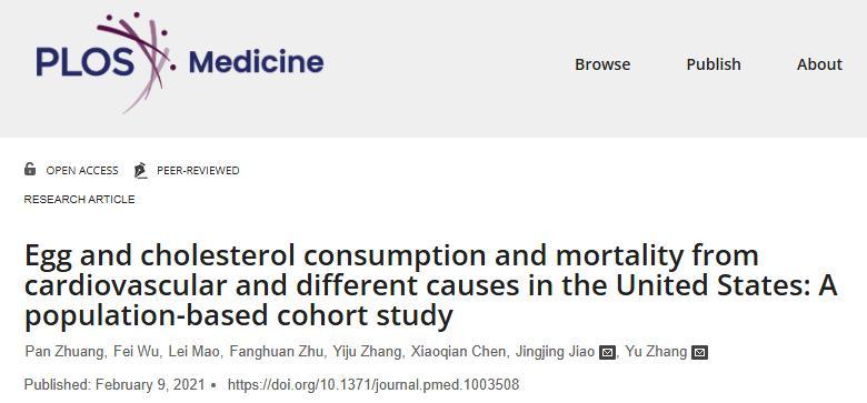 [1] Zhuang P, et al. Egg and cholesterol consumption and mortality from cardiovascular and different causes in the United States: A population-based cohort study.PLoS Med (2021).